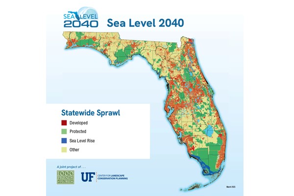 Description: This dataset contains a representation of developed lands projected to occur in Florida in the Sprawl 2040 scenario from the Sea Level 2040/2070 project. Sea Level 2040/2070 is a joint effort of the University of Florida's Center for Landscape Conservation Planning, 1000 Friends of Florida, and the Florida Department of Agriculture and Consumer Services. Sea Level 2040/2070 produced five land use/population distribution scenarios, Baseline, Sprawl 2040/2070, and Conservation 2040/2070. The two 2040 scenarios are based on a population projection produced by the Florida Bureau of Economic and Business Research. The Baseline captures the patterns of land use and associated population distribution that existed in 2019. Sprawl 2040 captures a potential pattern of land use and associated population distribution for 2040, should all new development occur in greenfields at the same gross development density as was present in each county in 2019. Conservation 2040 captures a potential pattern of land use and associated population distribution for 2040 that assumes increased gross development densities in greenfields over those of 2019, and protection for additional agricultural and natural lands