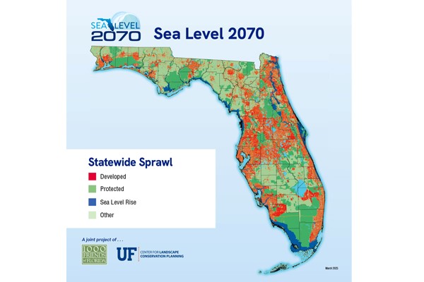 Description: This dataset contains a representation of developed lands projected to occur in Florida in the Sprawl 2070 scenario from the Sea Level 2040/2070 project. Sea Level 2040/2070 is a joint effort of the University of Florida's Center for Landscape Conservation Planning, 1000 Friends of Florida, and the Florida Department of Agriculture and Consumer Services. Sea Level 2040/2070 produced five land use/population distribution scenarios, Baseline, Sprawl 2040/2070, and Conservation 2040/2070. The two 2070 scenarios are based on a population projection derived from data produced by the Florida Bureau of Economic and Business Research. The Baseline captures the patterns of land use and associated population distribution that existed in 2019. Sprawl 2070 captures a potential pattern of land use and associated population distribution for 2070, should all new development occur in greenfields at the same gross development density as was present in each county in 2010. Conservation 2070 captures a potential pattern of land use and associated population distribution for 2070 that assumes increased levels of redevelopment of existing urban areas, increased gross development densities in greenfields over those of 2010, and protection for additional agricultural and natural lands.